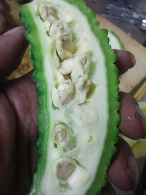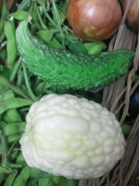 前の黄色くなったゴ-ヤの種の周りが甘いという記事を読んで、我が家のゴ-ヤを一つ黄色くしてみました。試してみるのが楽しみです。