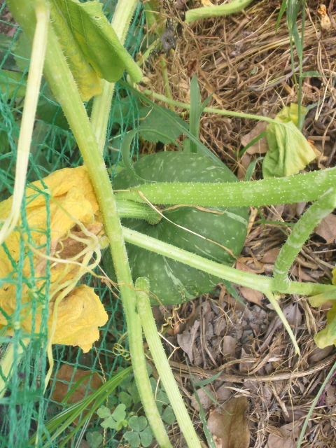 既に収穫したカボチャも3個有り、まだ花が咲いてるから増える可能性も有り!