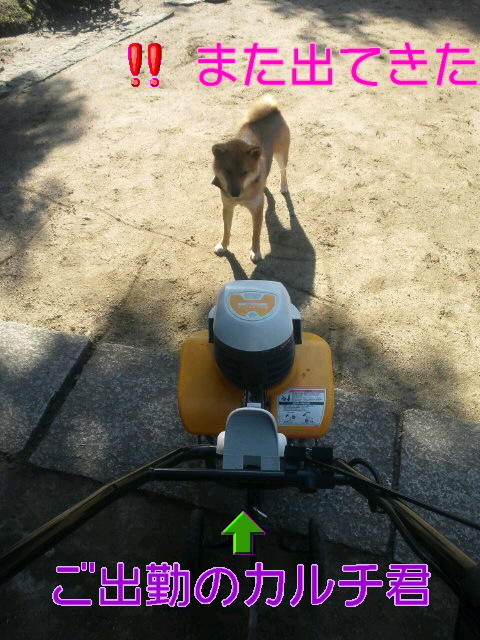 相も変わらず、ガウガウとカルチベータ君を威嚇していた柴犬さくら。