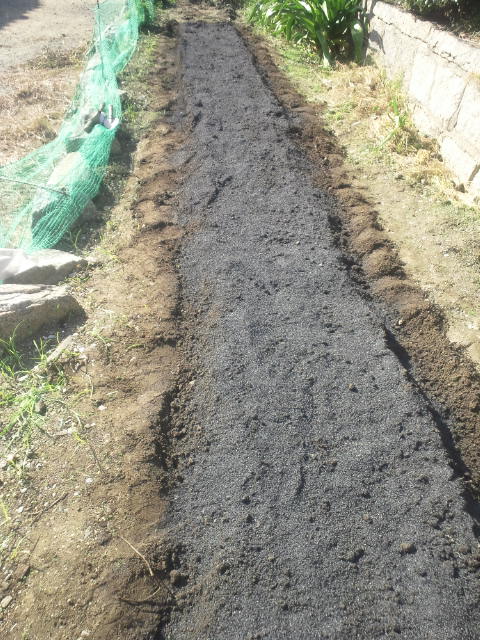 この後、鍬で畝の形を整えて、表面に燻炭を敷き詰めました。