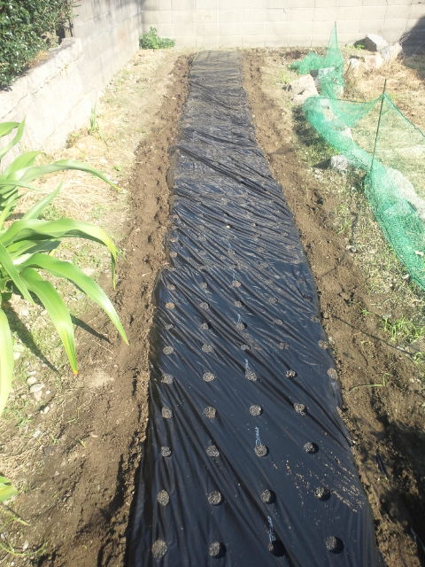 最後に15センチ間隔の穴あきマルチで覆って、完成!