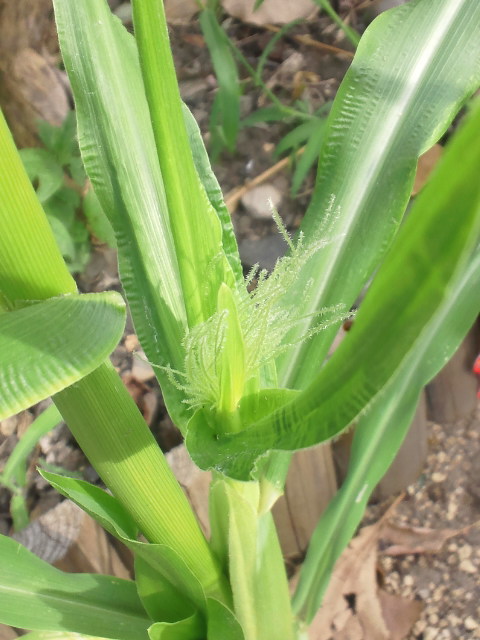 一番ちいこいクリスマスコーンにも雌花が見え始めてます。