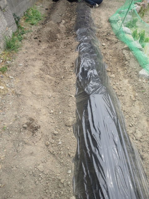最後に雑草防止のマルチ張りました。