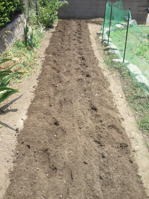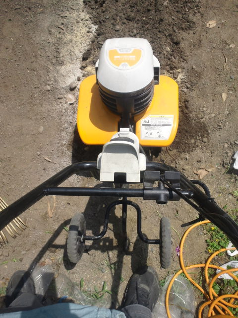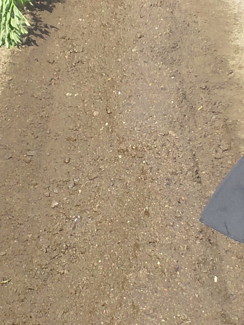 堆肥と石灰をカルチベータ君で鍬込んだ玉ねぎ跡地。
