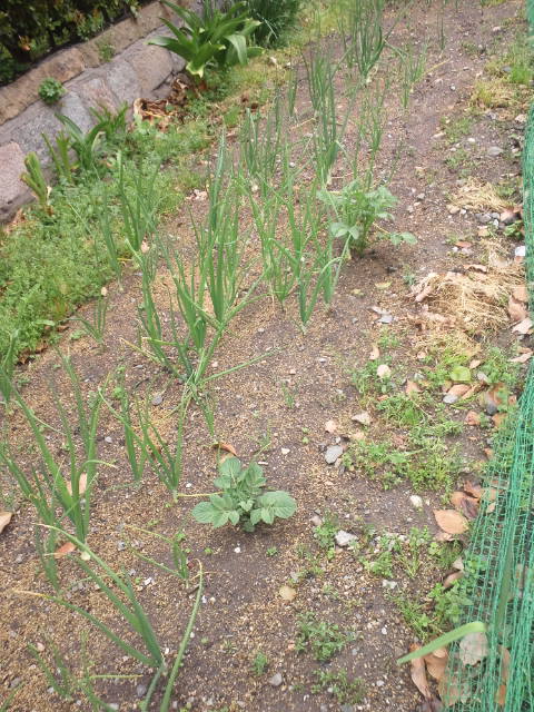 秋ジャガの取りこぼしがあったらしく、タマネギの脇からジャガイモが!