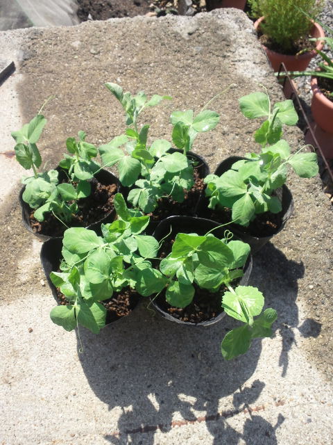 立派な苗に育ったスナップエンドウ。
