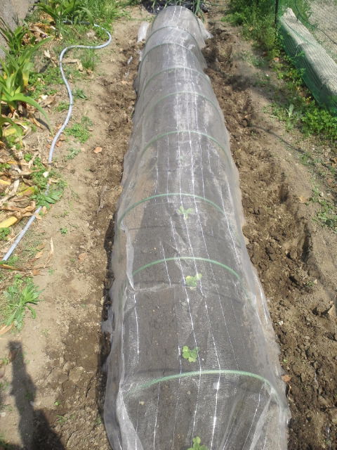 玉ねぎ畝の隣に、キャベツ畝を作りました。
