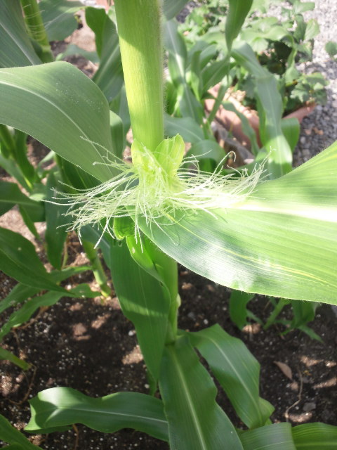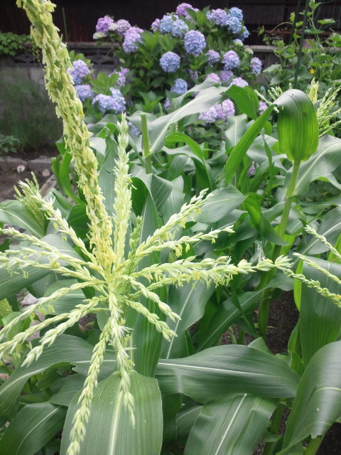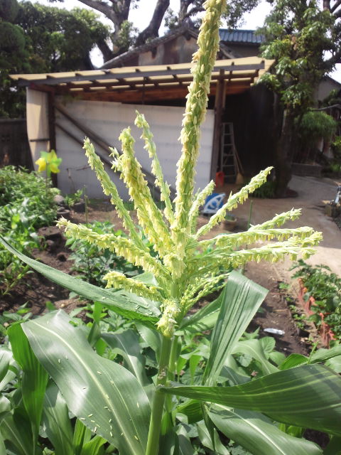 始めに蒔いたトウモロコシが花を咲かせ始めました。