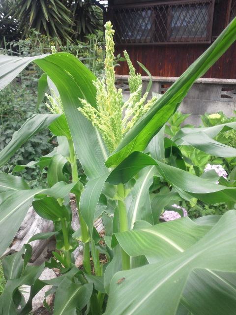 トウモロコシも、やっと雄花が顔を出し始めてます。