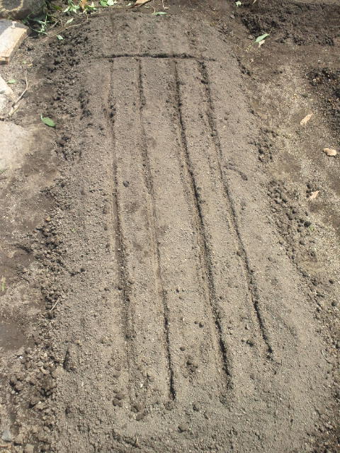 畝の形を整えてからニンジンの種を筋蒔きです。