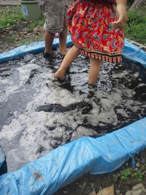 植える前には、まずブルーシート水田に入って暫く遊びました。