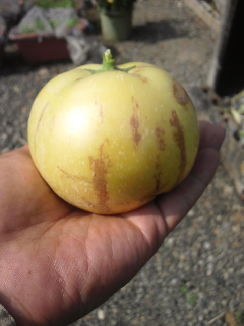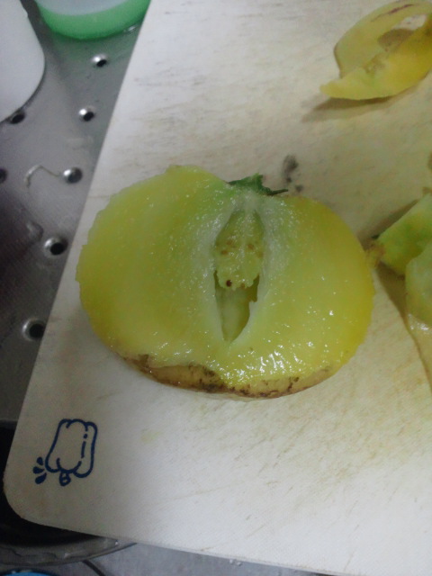トマトに似てると言うだけあって、割れてるやつを試しに収穫しました。