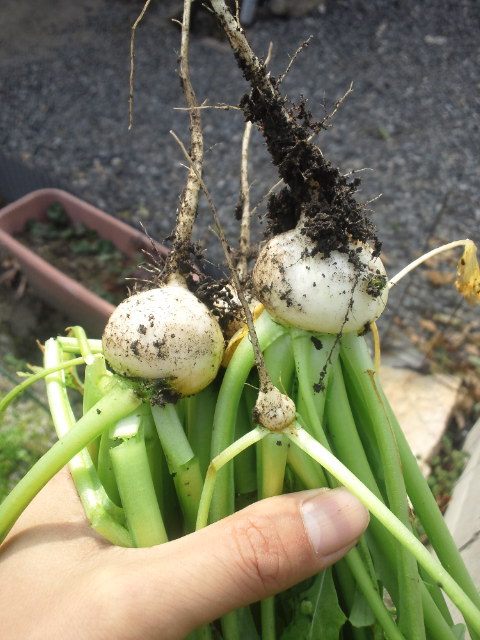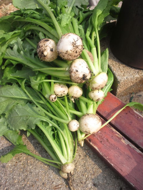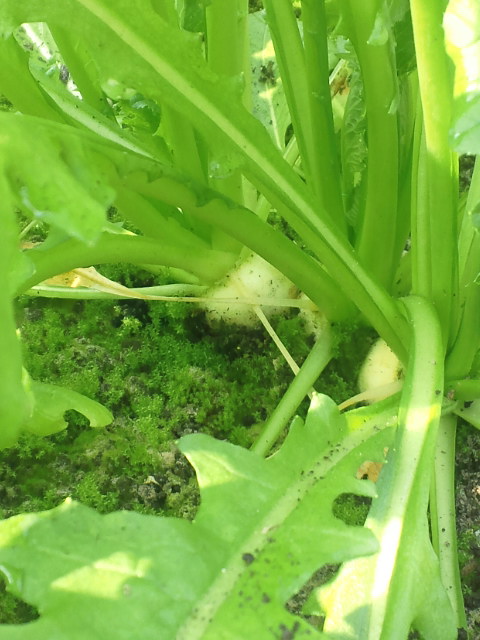 収穫してみると、小振りながら、しっかり蕪になってました。
