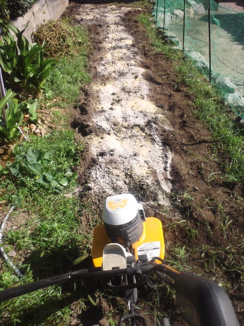 一旦耕した後で、石灰や堆肥、牛糞を施します。