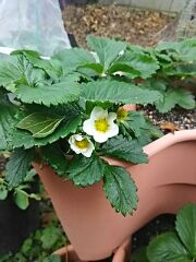 ミミちゃんところも、苺の花が咲いてるんですね。