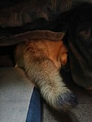 暖冬と言っていたのに突然の寒さ・・・さくらちゃんもこたつにもぐりたくなりますよね。しっぽが出てたり鼻だけ出たり、温度調節してるんですね~