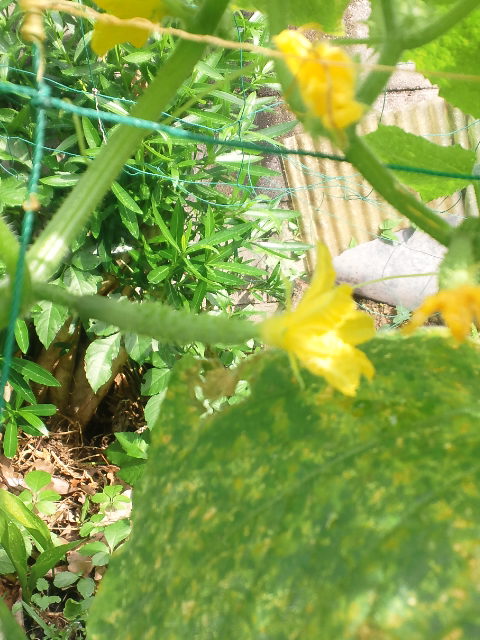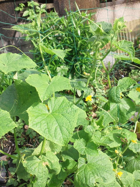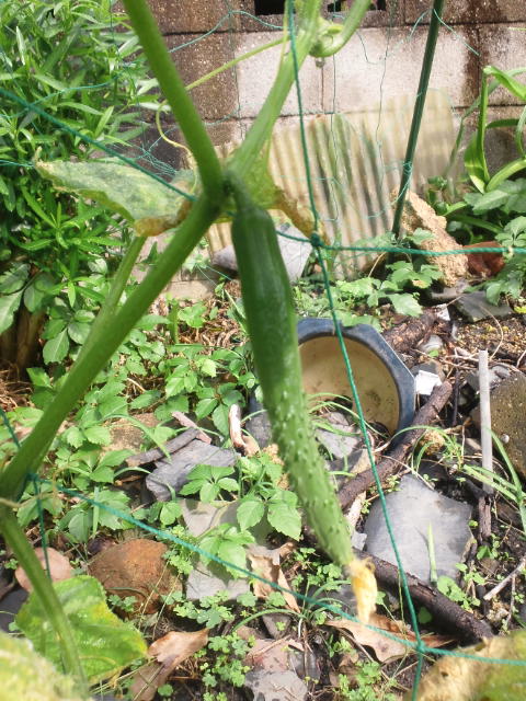 地這いキュウリは、ずいぶんキュウリになってきました。