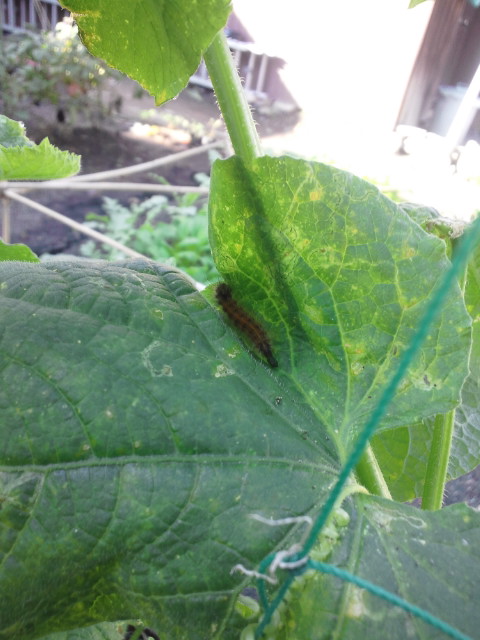 カナヘビ君のご飯にもならない毛虫、ソッコーで捕殺!