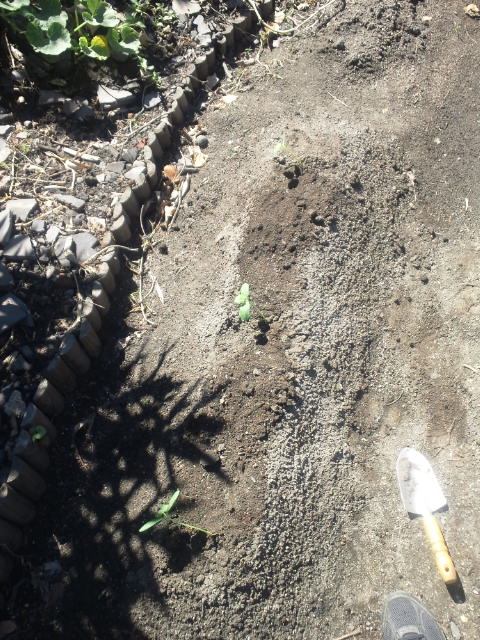 不安なので株間に地這いキュウリの種を直播きしときました。