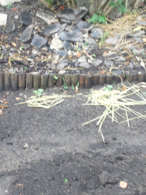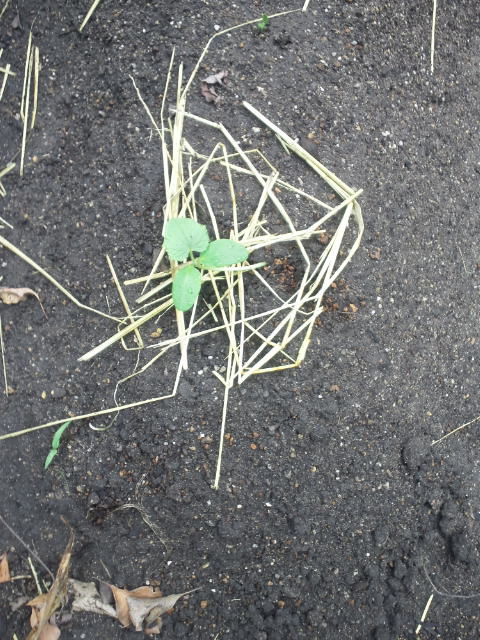 とりあえず藁を敷いて葉が土に触れないようにしました。