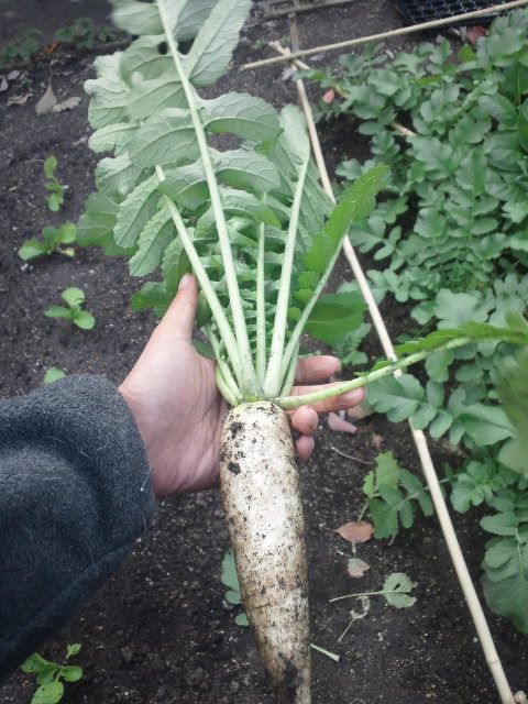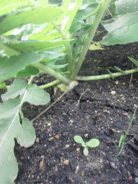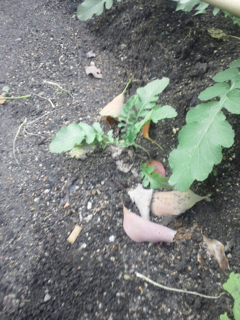 元気な大根の畝の横にこぼれ種からの脱走大根もいたりしますf^_^;