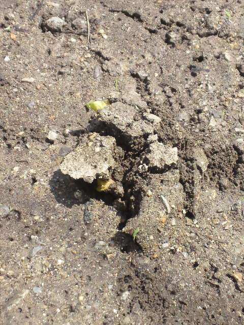 黒マルチが盛り上がってたのて、めくってみると、土を突き破って出てました。