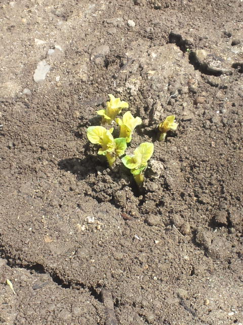 ジャガイモの発芽見て、春だな~って思うのは、家庭菜園のおかげかな。