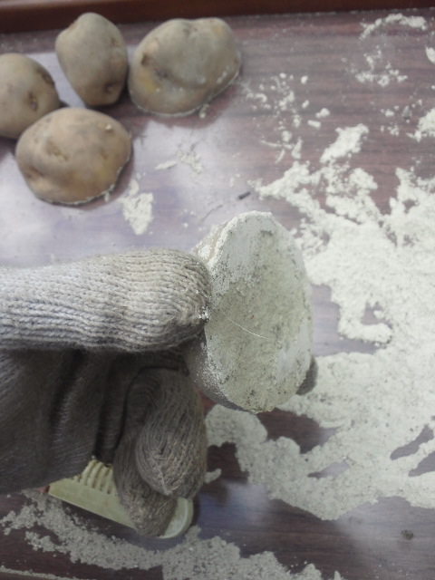 切断面から、腐る事があるので、草木灰をたっぷりつけます。