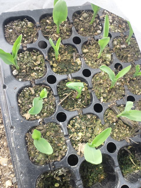 先日、種まきした春夏野菜たちが、順調に発芽しています。