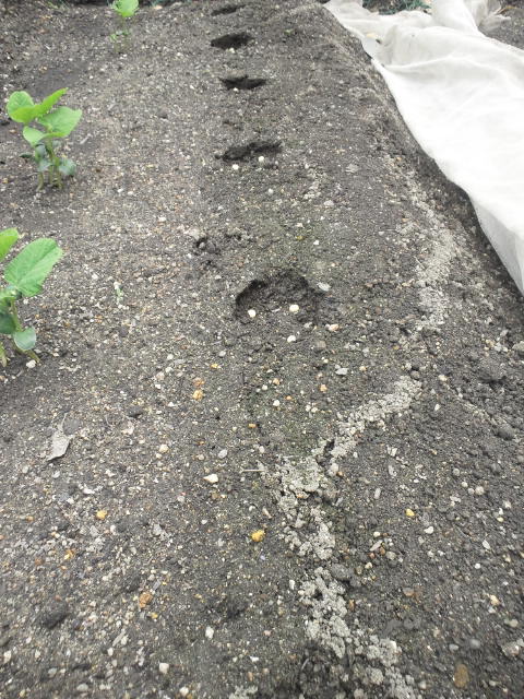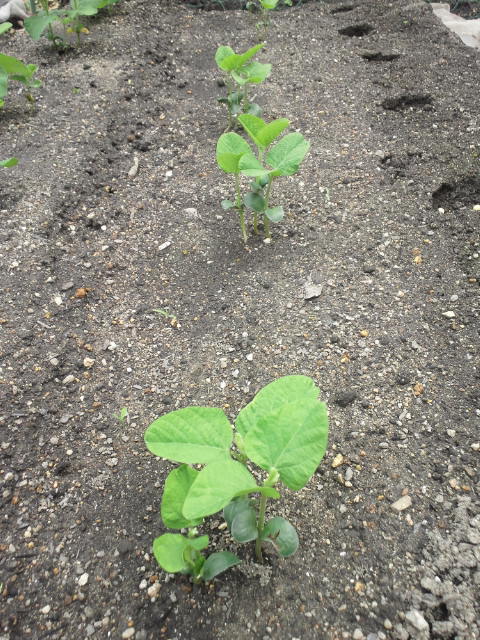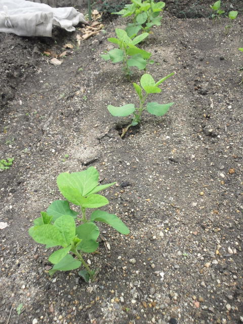 枝豆は基本的に2本立ちに仕立てるので間引きは1本だけですが、まだ少し早そうです。