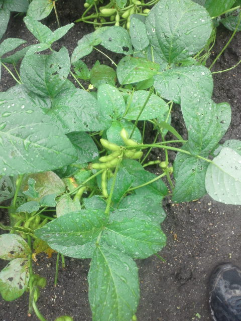枝豆の出来に満足している素人ファーマーに