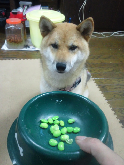 さくらちゃん、枝豆はちゃんとさやから自分で出さないとダメだワン。