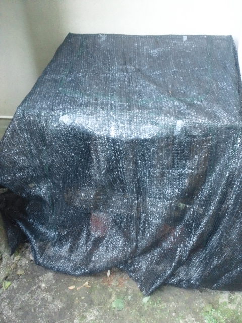 上から遮光ネットをかけて、風通しを確保しながら、直接の風と日光を避けます。