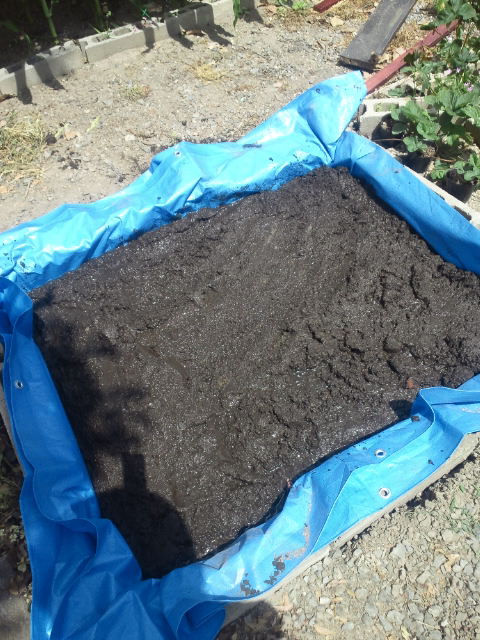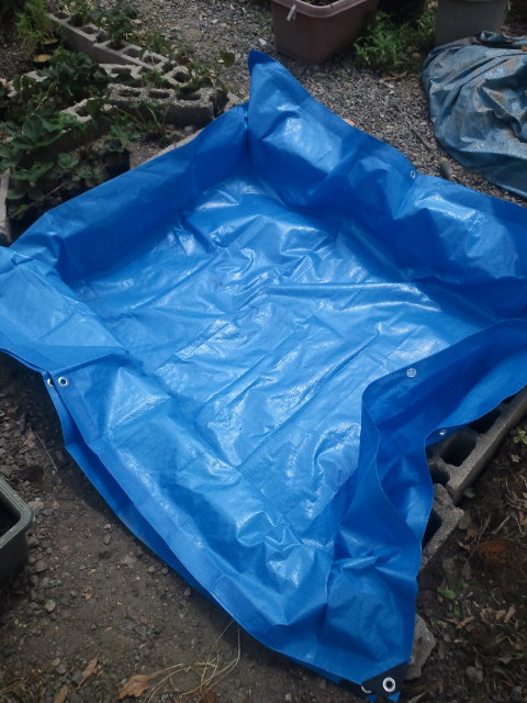しょうがなく、中の土を取り出して、新しいブルーシートをセット