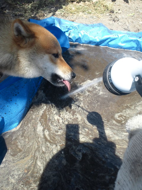 さくらちゃん、ホースで水入れになると出てきますね。思わず笑ってしまいました。私の笑いのつぼに・・。さくらちゃん、いい顔してます。楽しそう。