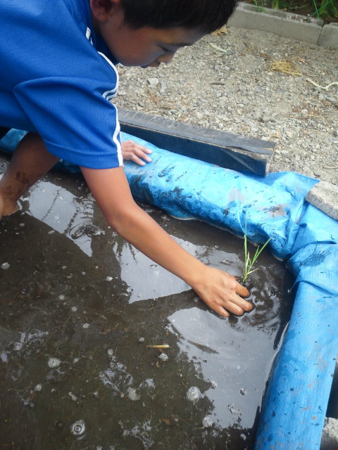 子供達が順番に田植え。