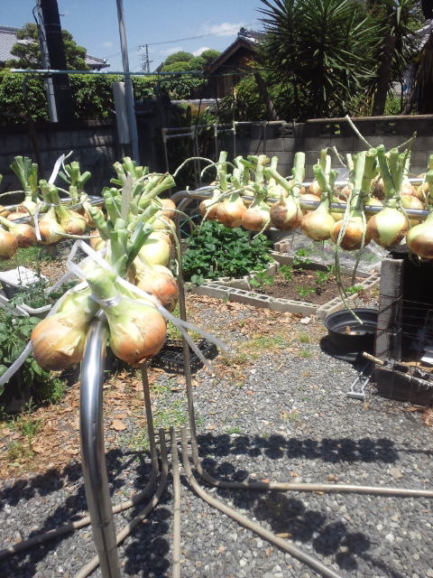 我が家の玉ねぎ、もう少し置いておいた方がよかったんですが、サツマイモ植えねばって事で収穫ですf^_^;