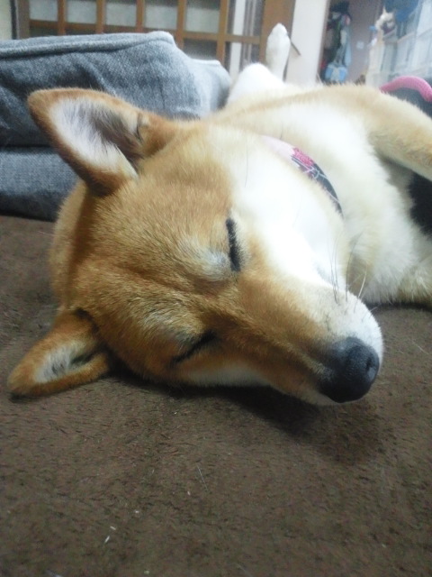で、すぐにお休みになった柴犬さくら。