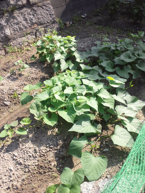 サツマイモの所は、ツルが伸びて窮屈そうです。