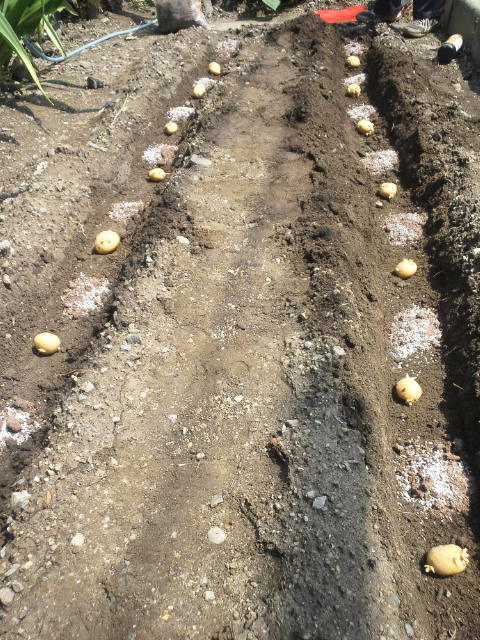 半月ほど前に買った種いもは、結構芽が出ていて植え付けにはいい感じ( ̄∀ ̄)