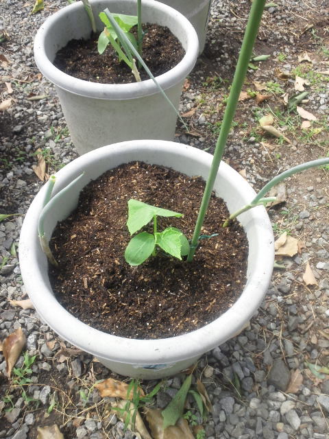 秋採りキュウリは、畝に植えると、場所をとって、秋冬野菜の場所が減ってしまいます。