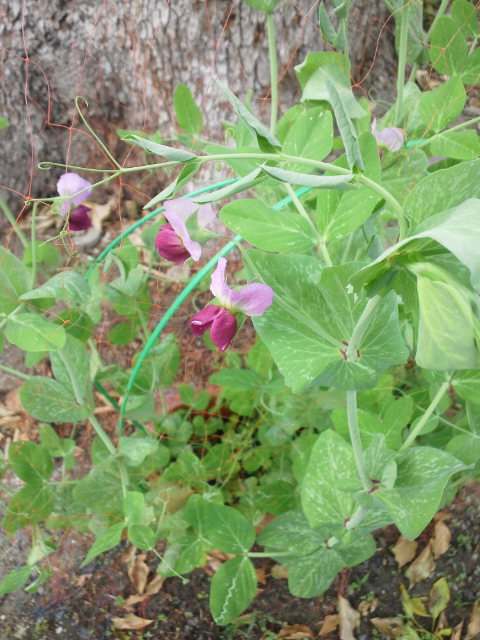最近収穫してたのは、秋植えのスナップエンドウですが、春に植えたスナップエンドウも花が咲き始めました。