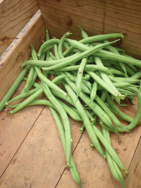 豆と言えば、一足早く、蔓無しインゲンが収穫時期を迎えました!