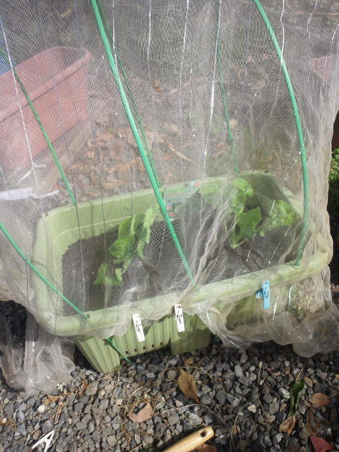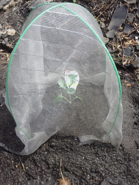 そして、ホワイト茎ブロッコリーにもネットをかけます。