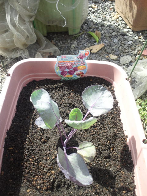 芽キャベツは中型の幅が拾いプランターに植え付けました。