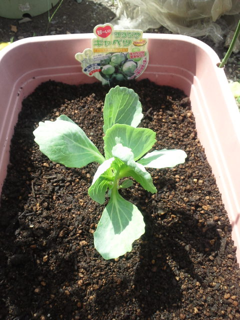 すずなりキャベツも同様に中型の幅広プランターに植え付け