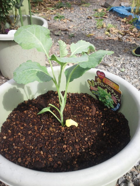 すずなりブロッコリー2種は、丸型プランターに植え付けました。