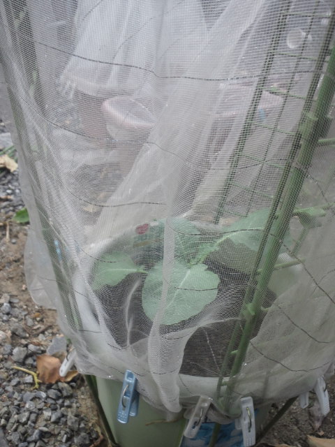 そして、ホワイト茎ブロッコリーと同じ方法で、すずなりブロッコリーにもネットをかけました。