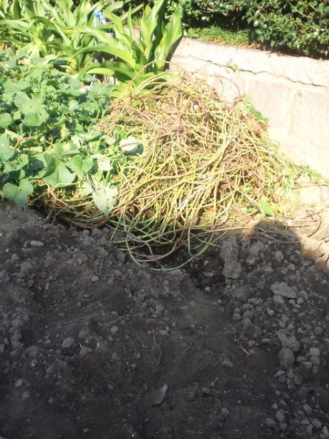 植え付け時期が遅かったので、先に植え付けたポット苗の所を試し掘りしてみました。