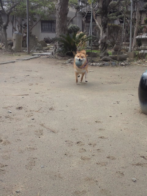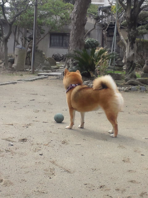 畑仕事をしていると、遊ぼうと待ってる柴犬さくら
